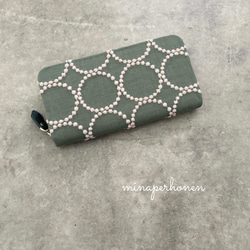 - ファッション小物 > 財布・ケース・小物入れ > ミナペルホネン生地使用 長財布 グレーのウール地にピンクベージュ系のタンバリン ミナペルホネン生地使用 長財布 グレーのウール地にピンクベージュ系の